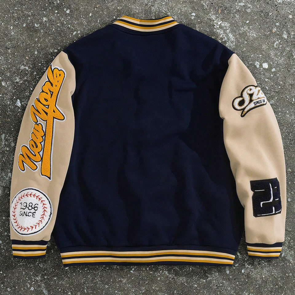 แจ็กเก็ตเบสบอลมหาวิทยาลัยสำหรับผู้ชายขนาดใหญ่พิเศษพิมพ์ลายตัวอักษรสีคมชัดแบบลำลองใส่สบายสำหรับฤดูใบไม้ร่วงกลางแจ้ง
