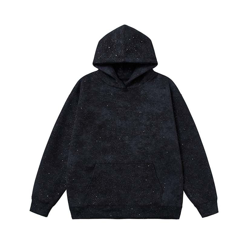 เสื้อฮู้ดผ้าฝ้ายโพลีเอสเตอร์แบบสวมหัวลายท้องฟ้าเต็มไปด้วยดวงดาว450gsm พลัสไซส์