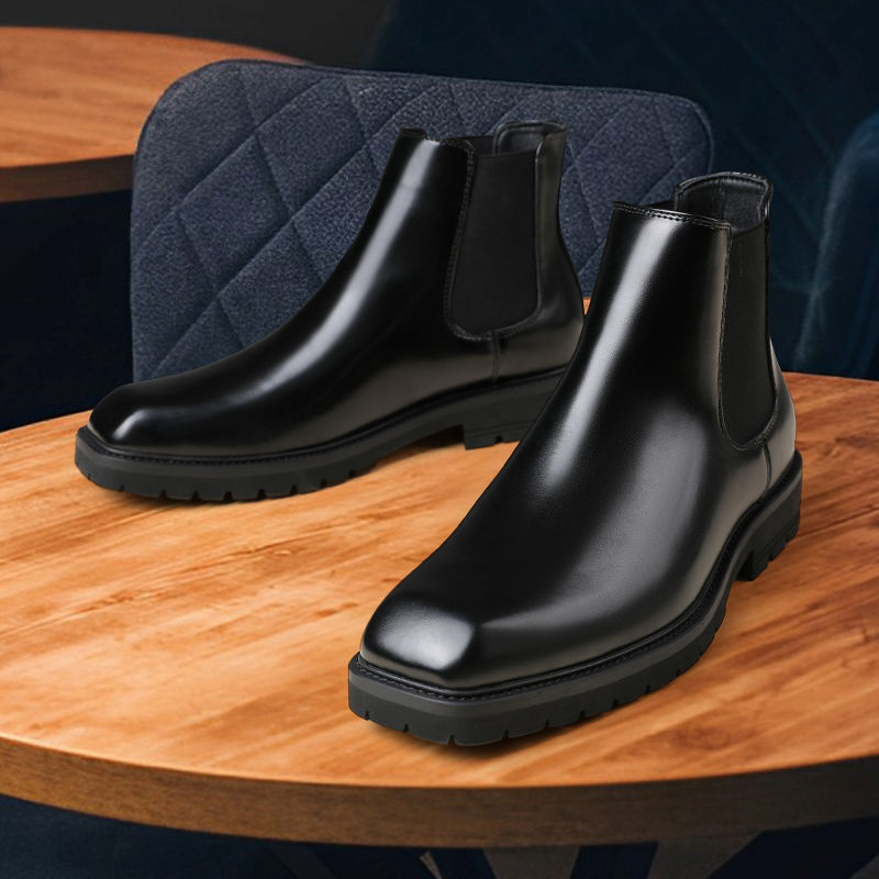 รองเท้าบูทแบบสวมสไตล์เชลซีสำหรับผู้ชายไซส์ใหญ่ ดีไซน์หรูหรา ทำจากหนัง PU นุ่ม ใส่ได้ทุกโอกาส ทั้งฤดูหนาว ฤดูร้อน และฤดูใบไม้ผลิ