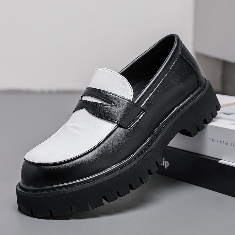 รองเท้าโลฟเฟอร์แบบสวมสำหรับผู้ชายไซส์ใหญ่ พื้นหนาเพิ่มความสูง วัสดุ PU สไตล์เรโทรลำลอง เหมาะสำหรับใส่ทำงานและในชีวิตประจำวัน พื้นรองเท้าทำจากยาง ใส่ได้ทุกฤดู