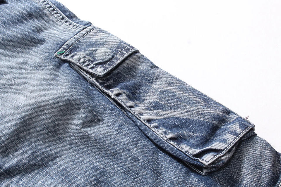 Plus Size Men's Summer Cargo Shorts with Vintage Fashion Pocket Baggy Denim Wholesale Casual Style Solid Pattern RRI-MS-53