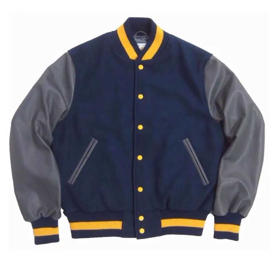 เสื้อแจ็คเก็ตยูนิเวอร์ซิตี้ผู้ชายไซส์ใหญ่ แบบเรียบ ผ้าขนสัตว์ แขนหนัง ขายส่ง เสื้อแจ็คเก็ตผ้าแคนวาสเปล่า เสื้อแจ็คเก็ตวิซาร์ดสำหรับผู้ชาย
