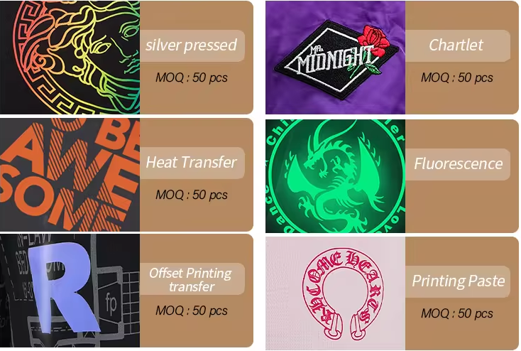Logo position:Front, back, Left Sleeve, Right Sleeve, lower hem, back neck