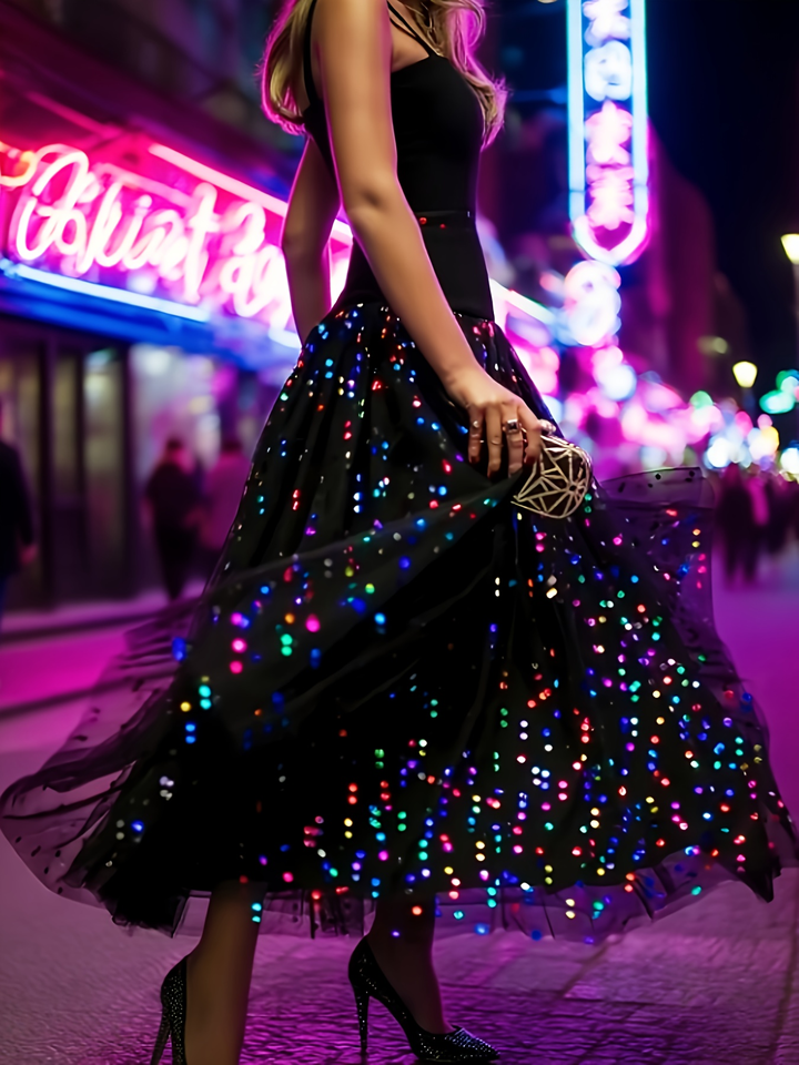 กระโปรงผ้าทูลลายจุดหลากสีไซส์พลัส ทรงเอไลน์พลิ้วสวย เอวธรรมชาติ กระโปรงยาวลำลองสำหรับฤดูร้อน