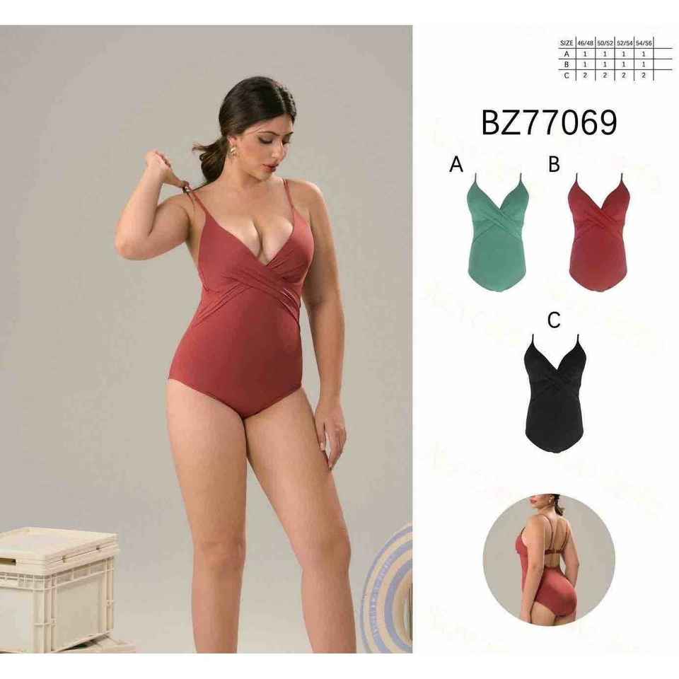 ชุดว่ายน้ำวันพีซคอวีสำหรับผู้หญิงไซส์ใหญ่ แบบรัดหน้าท้อง โชว์หลัง ชุดว่ายน้ำสำหรับฤดูร้อน ชุดชายหาด ขายส่ง รุ่นใหม่ BZ77069