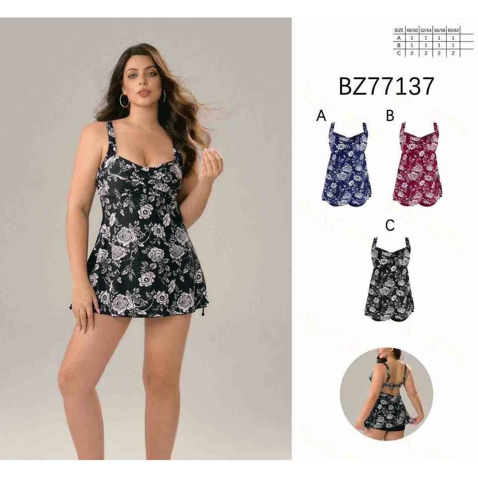ชุดว่ายน้ำวันพีซสำหรับผู้หญิงไซส์ใหญ่ คอวี รัดรูปเก็บหน้าท้อง เปิดหลัง ชุดว่ายน้ำสำหรับฤดูร้อน ชุดชายหาด ไซส์ S-2XL รุ่น BZ77137