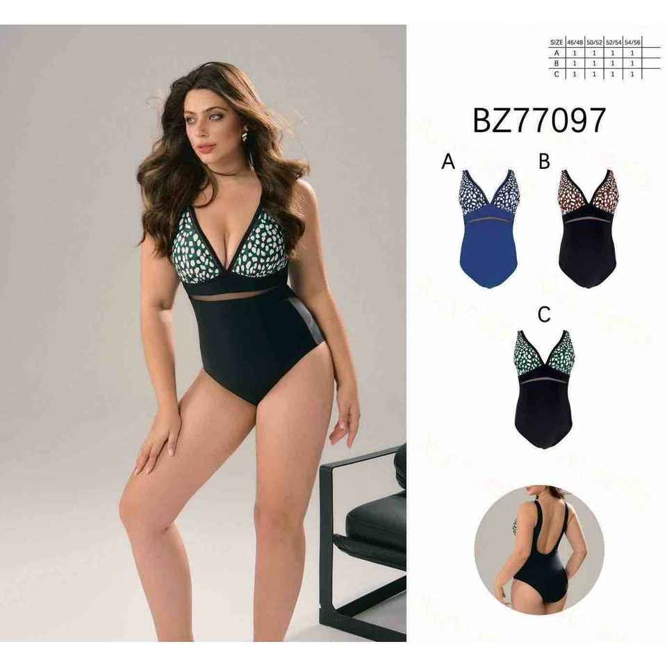 ชุดว่ายน้ำวันพีซสำหรับผู้หญิงไซส์ใหญ่ คอวี รัดรูปเก็บหน้าท้อง เปิดหลัง ชุดว่ายน้ำสำหรับฤดูร้อน ชุดชายหาด ขายส่ง รุ่นใหม่ BZ77097
