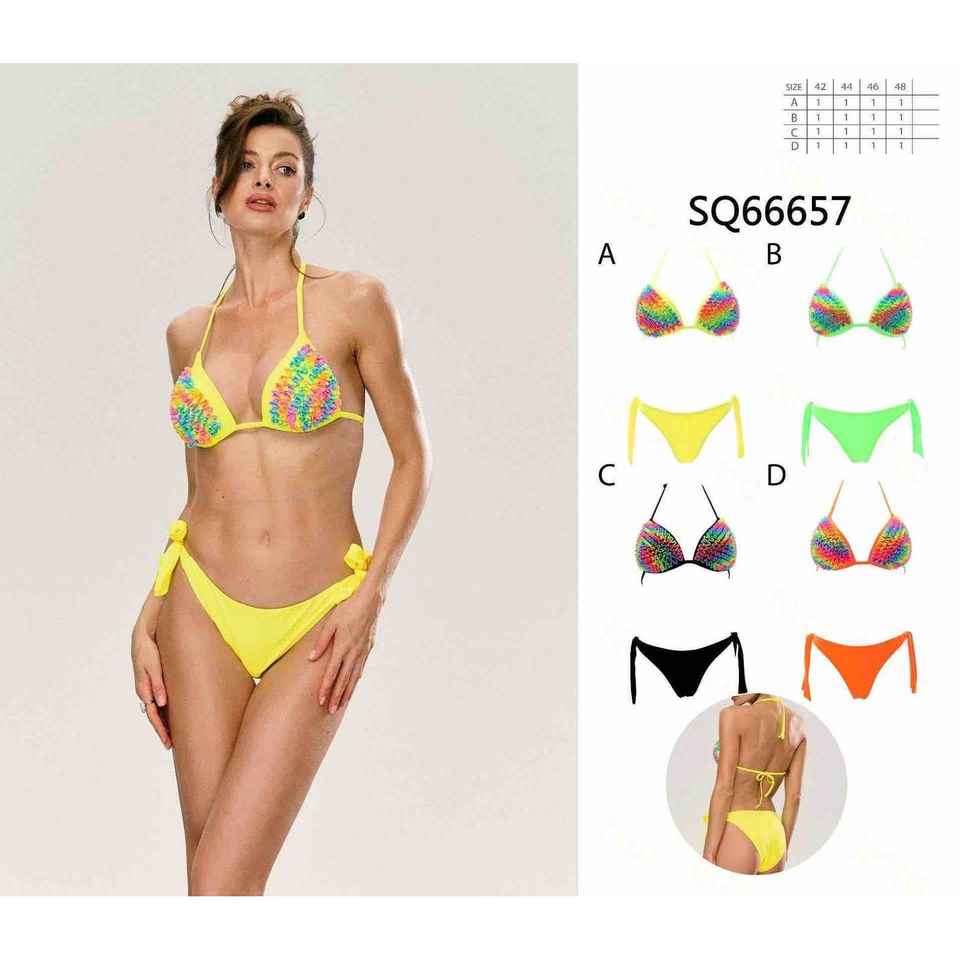 ชุดบิกินี่ทรงสามเหลี่ยมสำหรับผู้หญิง ชุดว่ายน้ำสองชิ้นสำหรับฤดูร้อน เสื้อชั้นในแบบผูกคอ กางเกงเอวสูงผูกข้าง ดีไซน์หรูหรา ขายส่ง sq66657