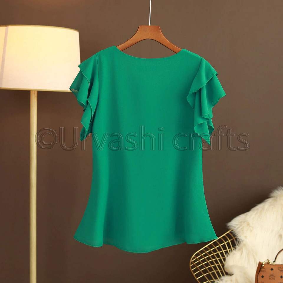 เสื้อเบลาส์ทรงหลวมพิเศษของผู้หญิง,เสื้อคอวีแขนผีเสื้อลำลองสไตล์ใหม่ฤดูร้อนปี2020