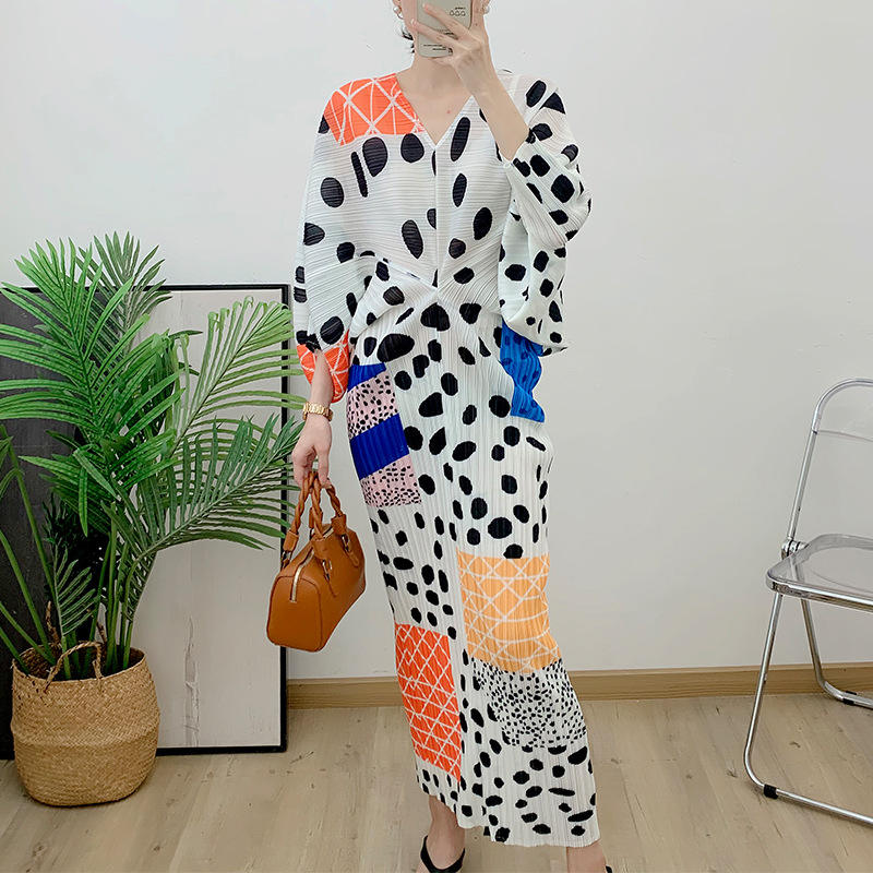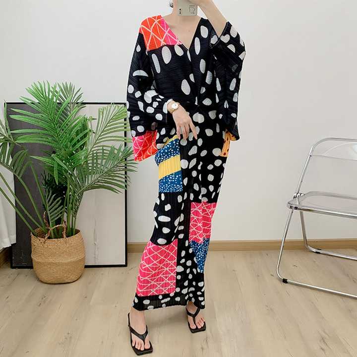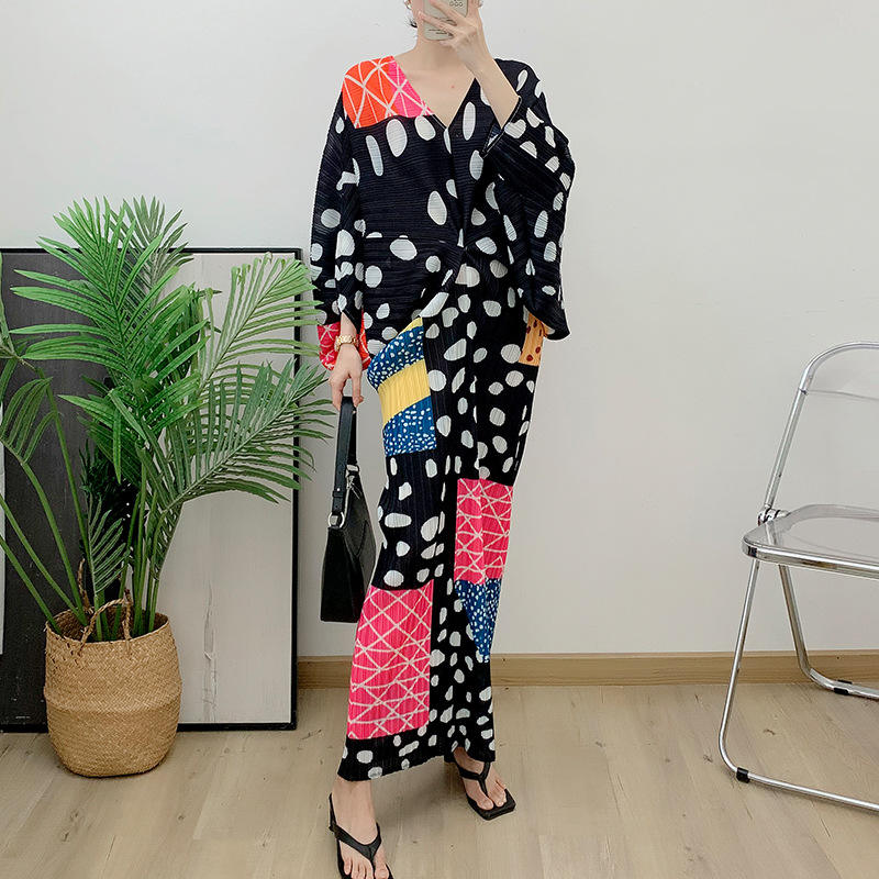 เดรสพลีทไซส์ใหญ่สำหรับผู้หญิง แขนทรงปีกค้างคาว ทรงหลวม เอวธรรมชาติ รับผลิตตามแบบ ODM พิมพ์ลายตามสั่ง ชุดราตรีออกงาน ชุดงานเลี้ยง