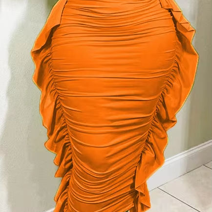 กระโปรงพับจีบกระเพื่อมสีแดงสำหรับผู้หญิงขนาดใหญ่พิเศษสำหรับ2025