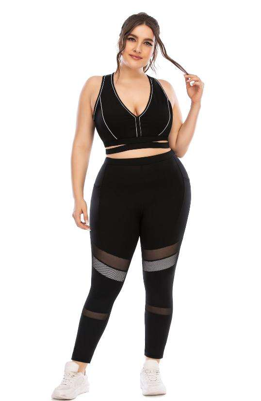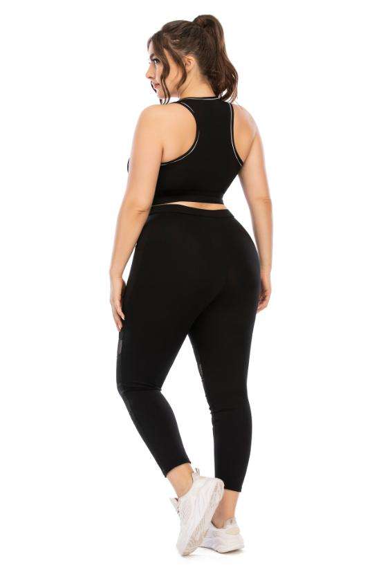 ชุดโยคะ 2 ชิ้นสำหรับผู้หญิง ไซส์พลัส ผ้ากันน้ำ เอวยางยืด สีพื้น ใส่ได้สองด้าน เหมาะสำหรับออกกำลังกายที่ยิม