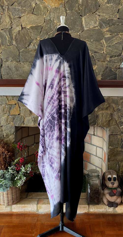 ชุดเดรสผ้าเรยอนย้อมสีแบบชิโบริ ไซส์พลัส สไตล์ญี่ปุ่น งานศิลปะที่สวมใส่ได้