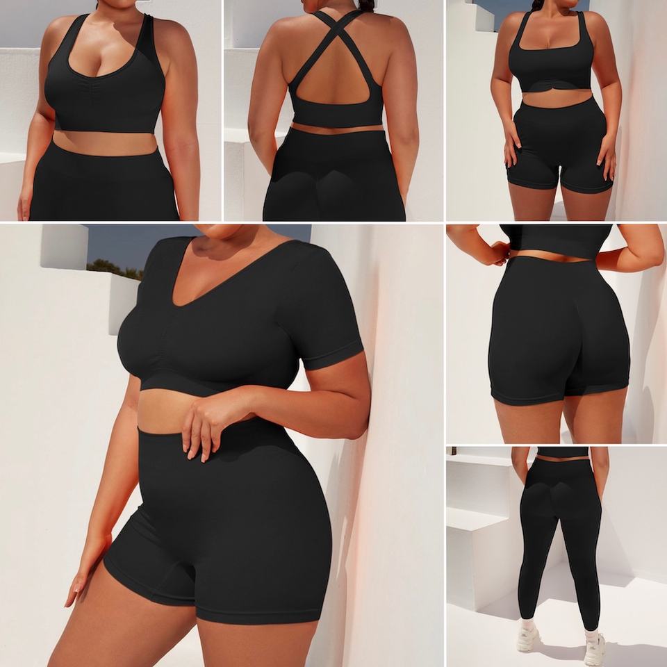 ชุดออกกำลังกายสปอร์ตแฟชั่นไซส์ใหญ่พิเศษ ถึง 4XL เสื้อชั้นในโยคะแบบสายไขว้หลัง พร้อมกางเกงเลกกิ้งยิมยืดหยุ่นสูง ชุดออกกำลังกาย
