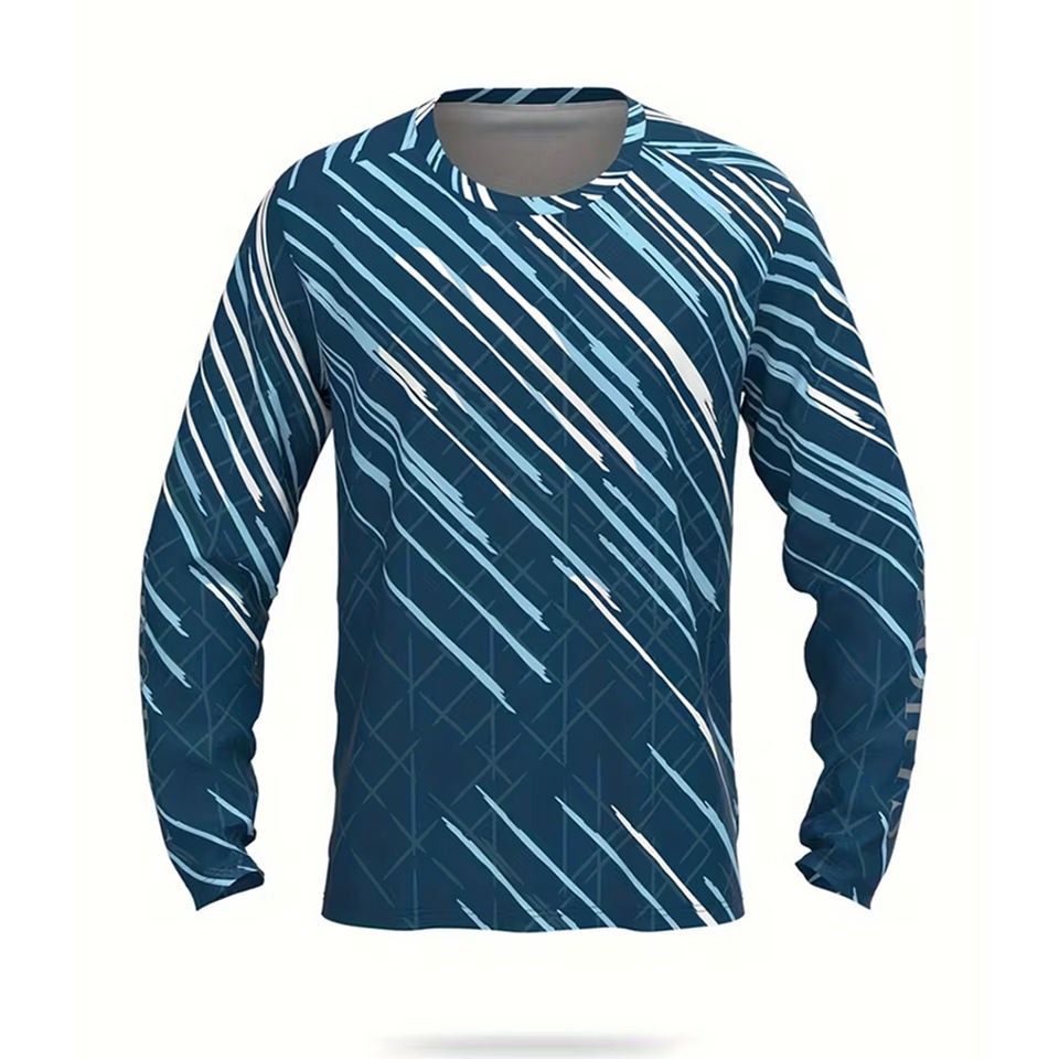 เสื้อยืดคอกว้างแขนยาวไซส์ใหญ่สำหรับผู้ชาย พิมพ์ลายแบบซับลิเมชั่น ดีไซน์ตามสั่ง เป็นมิตรต่อสิ่งแวดล้อม ระบายอากาศได้ดี ผลิตจากโพลีเอสเตอร์ 100% พร้อมโลโก้สั่งทำ