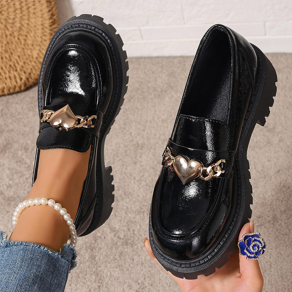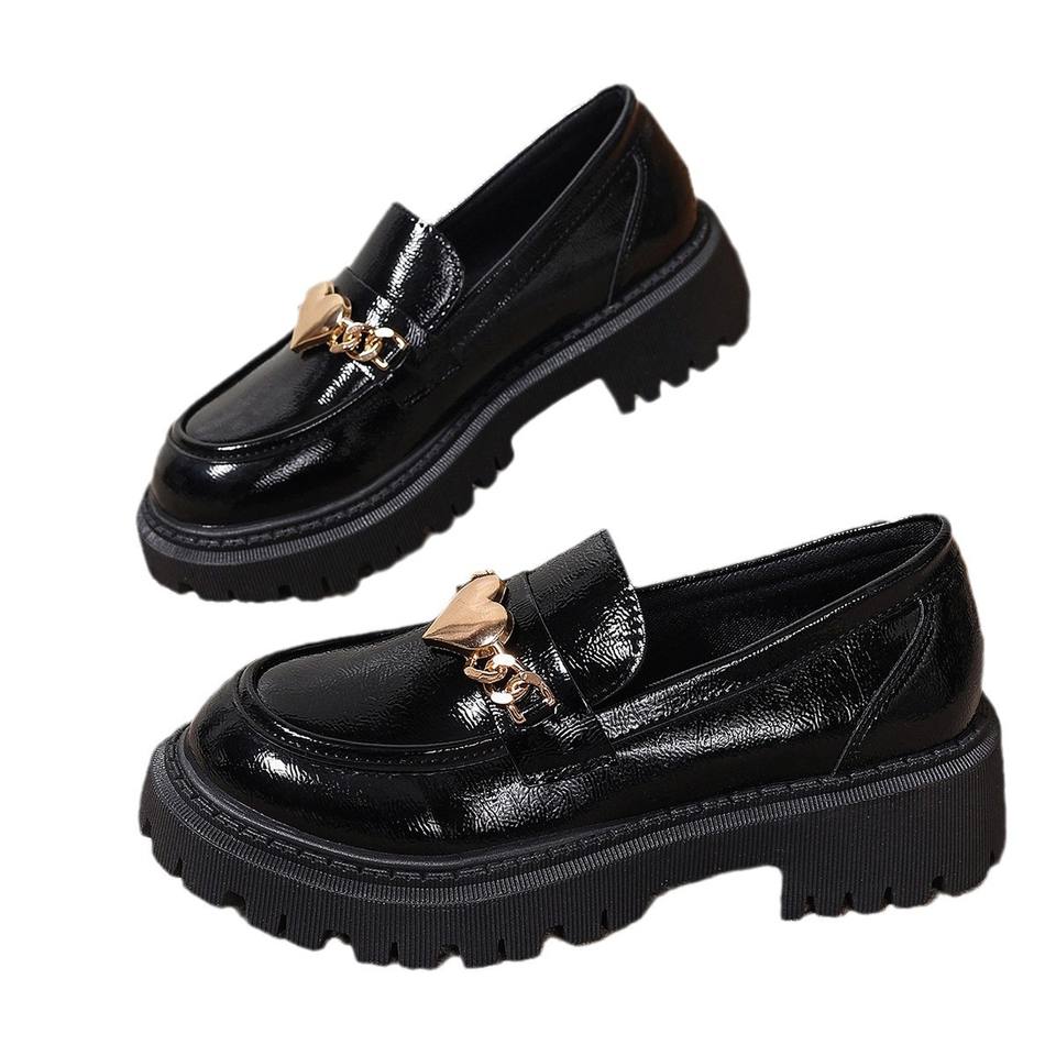 รองเท้าส้นเตารีดแบบสวม สไตล์อังกฤษ สำหรับผู้หญิง ไซส์ใหญ่ พื้นหนา ประดับโซ่ เหมาะสำหรับฤดูใบไม้ร่วง ทำจากหนังแท้