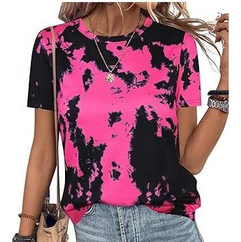 เสื้อยืดผู้หญิงไซส์ใหญ่ลายมัดย้อม ลวดลายเรียบง่าย ผ้าโพลีเอสเตอร์ฟอกสี แฟชั่นทันสมัย ลายพิมพ์แบบรีดร้อน