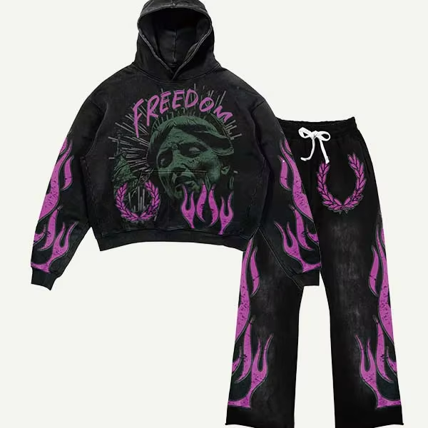 ชุดวอร์มมีฮู้ดไซส์ใหญ่สำหรับทุกเพศ ผ้าฝ้าย ลายพิมพ์ ลุคย้อนยุค ล้างสีแบบแอซิดวอช สำหรับฤดูหนาว