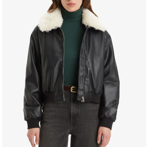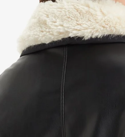 บอมเบอร์แจ็คเก็ตหนังแท้สำหรับผู้หญิงขนาดใหญ่พิเศษหนังแกะปลอมพร้อมปลอกคอขนสัตว์โพลีเอสเตอร์