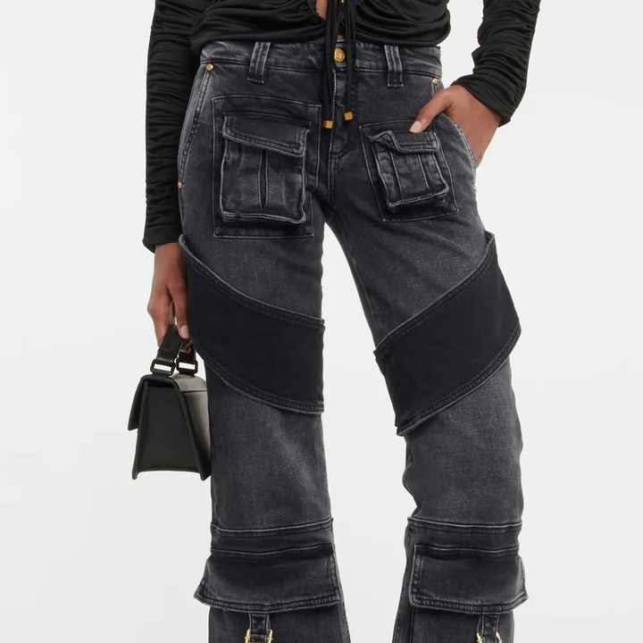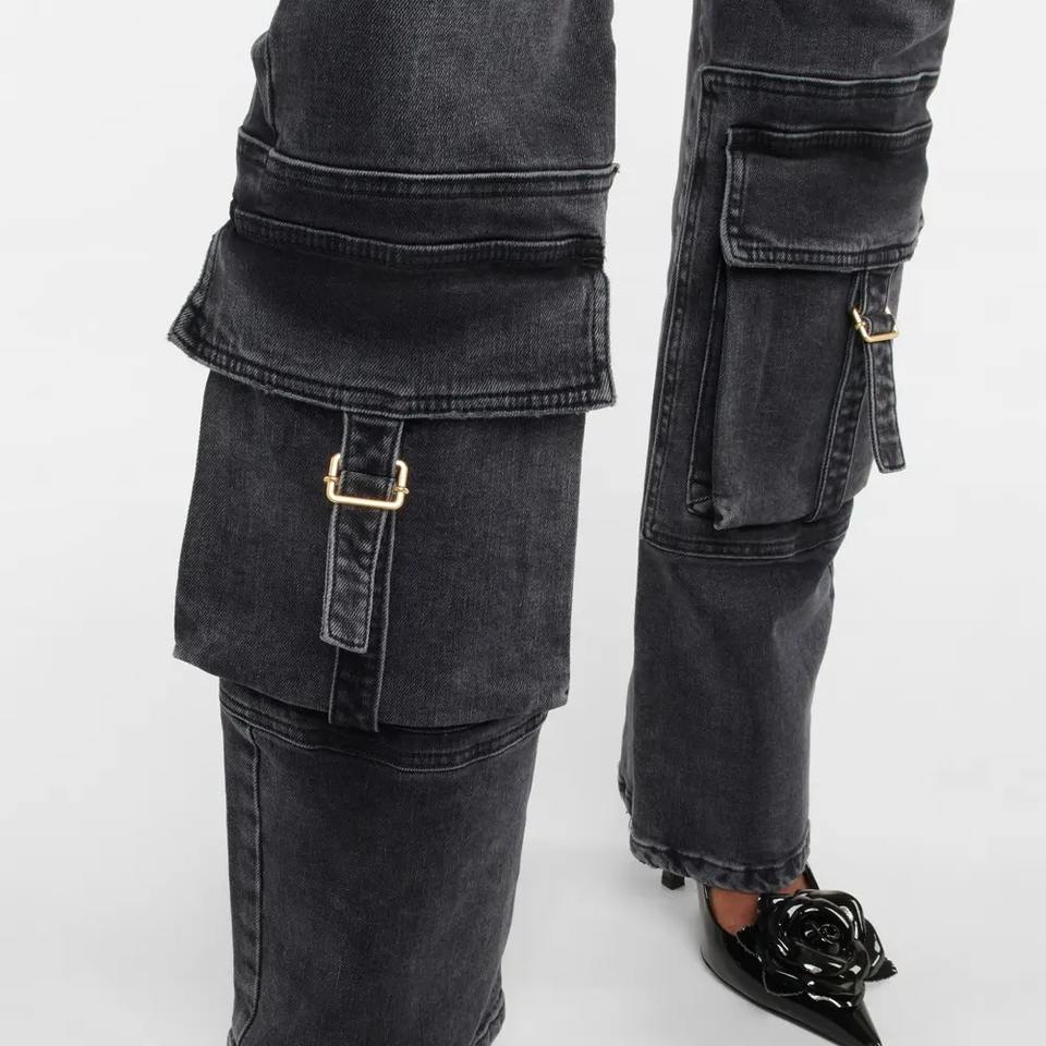 กางเกงยีนส์เข้ารูปสำหรับผู้หญิงขนาดใหญ่พิเศษกางเกงยีนส์เอวสูง2024เอวสูงมีกระเป๋าหลายช่องระบายอากาศ