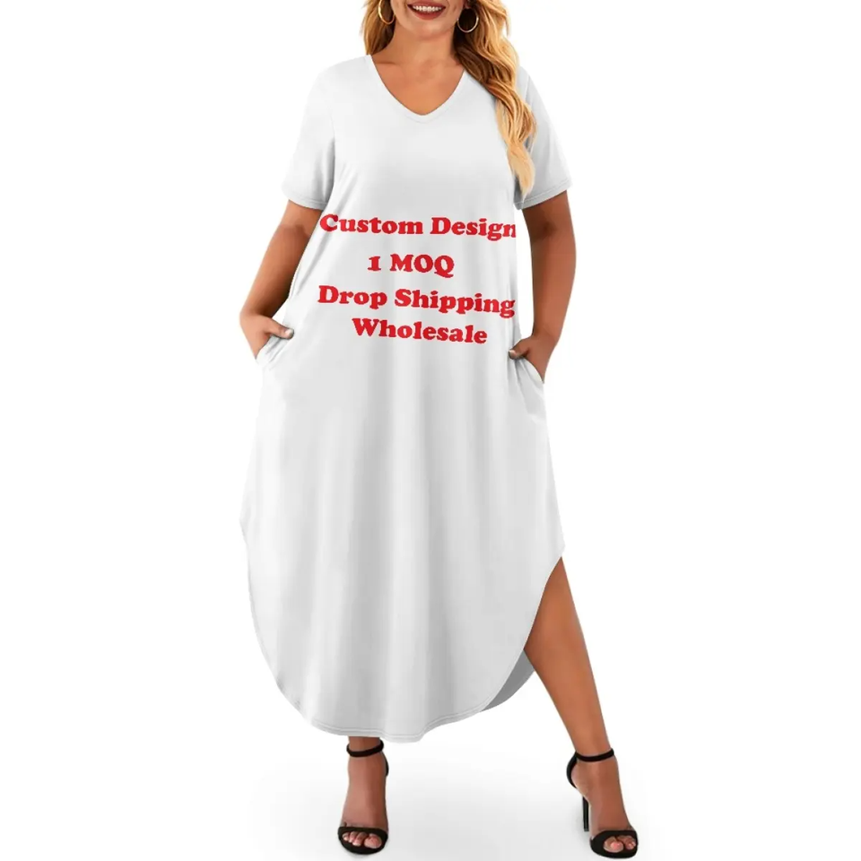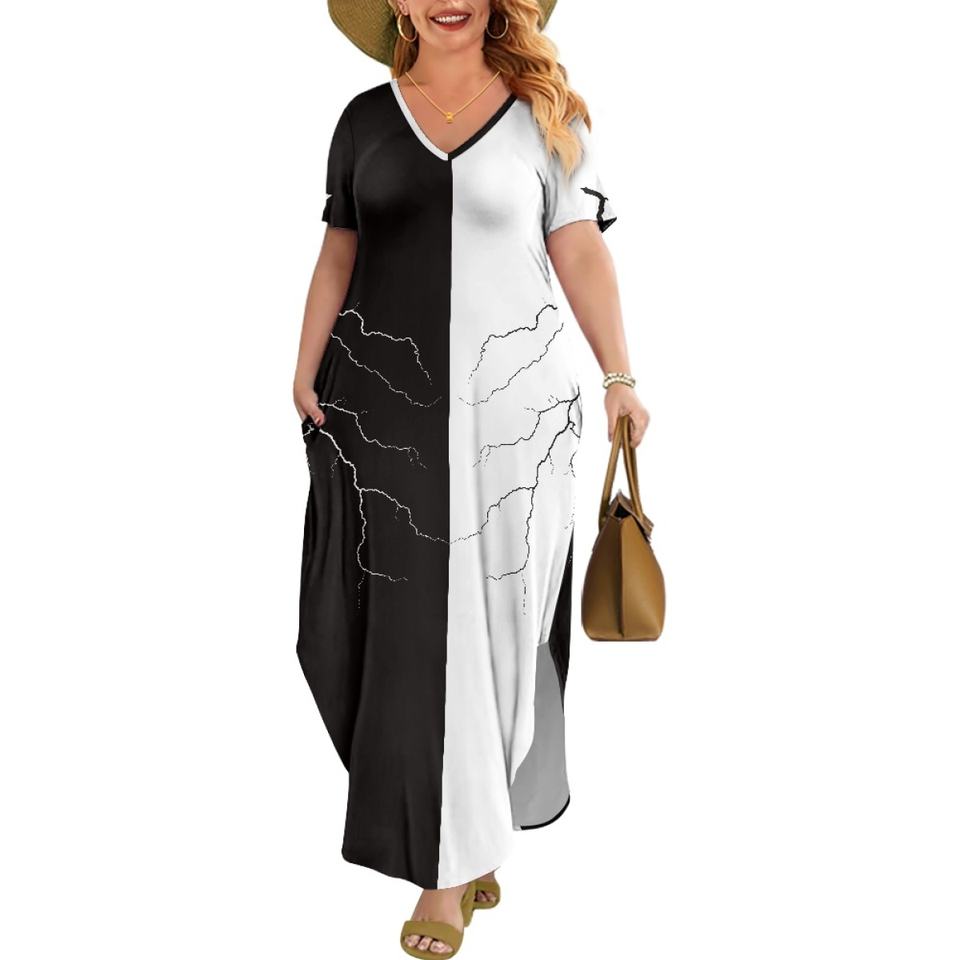 ชุดเดรสทรงหลวมสีดำและสีขาวสำหรับผู้หญิงอ้วนกระโปรงชายหาดสำหรับฤดูร้อน