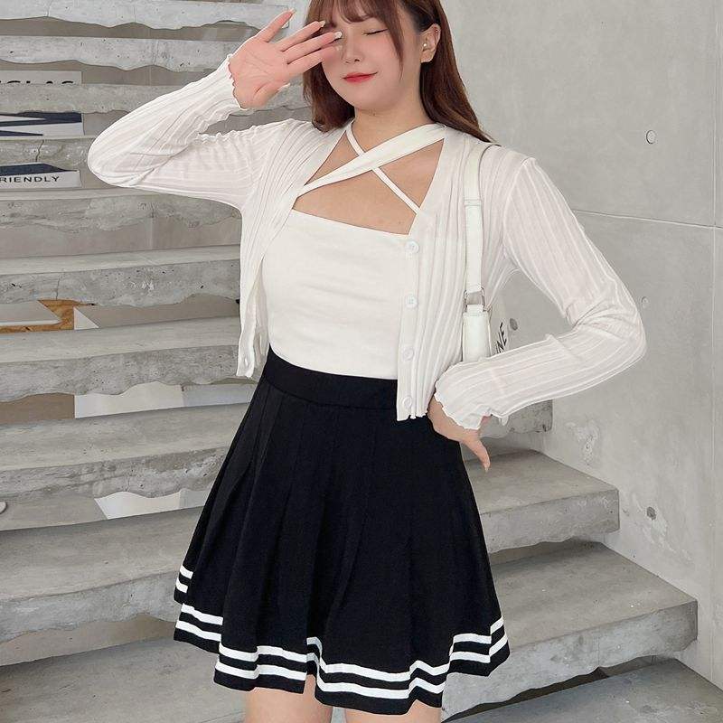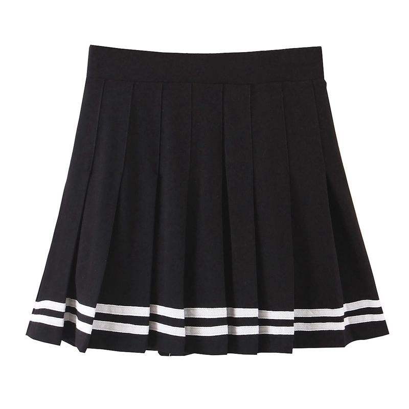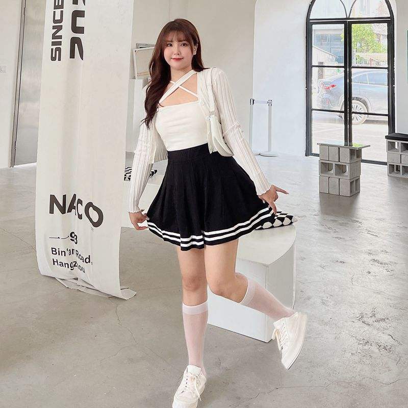 กระโปรงมินิจีบสำหรับผู้หญิงไซส์ใหญ่ สีดำ โพลีเอสเตอร์ไฟเบอร์ เอวธรรมชาติ N8423