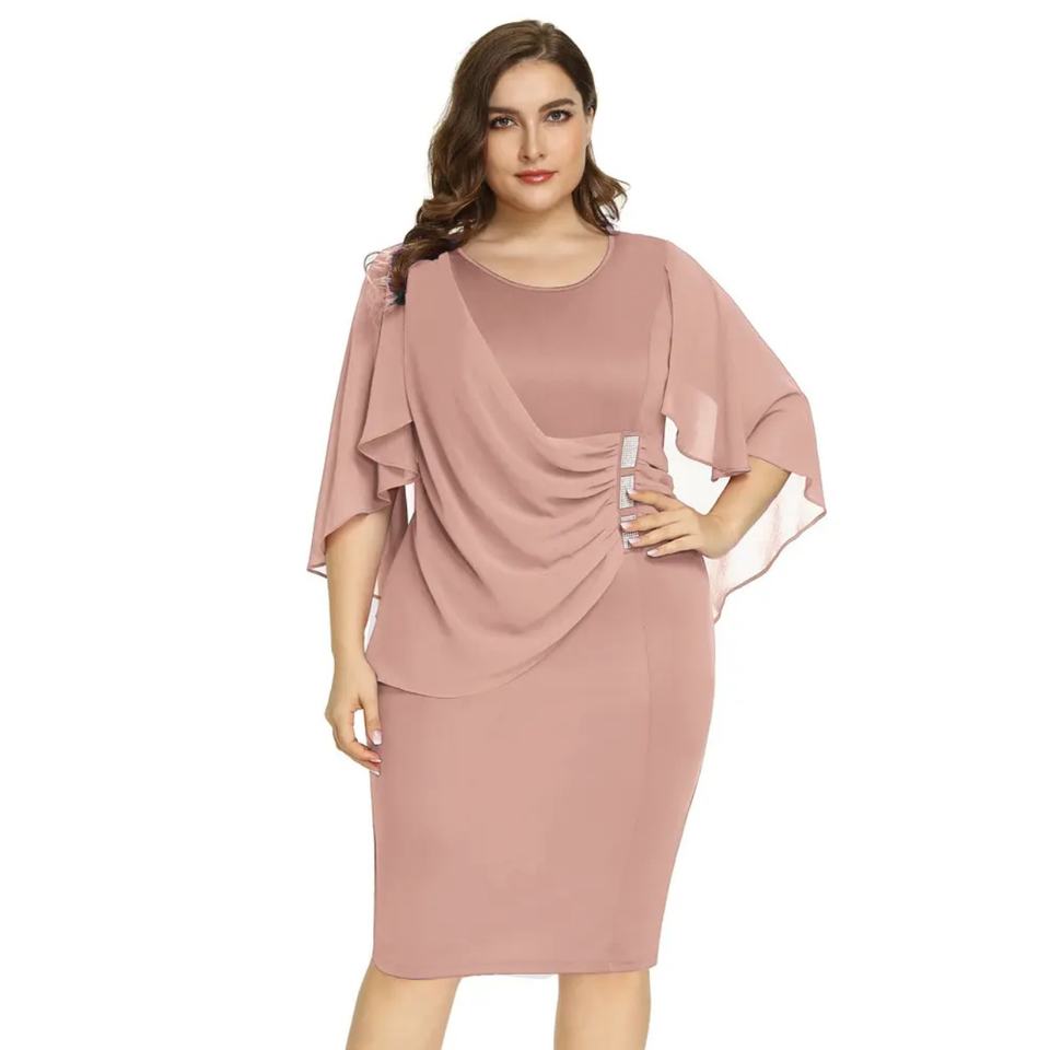 เดรสไซส์ใหญ่สำหรับผู้หญิง แขนระบาย ชายผ่าสูง สีพื้น เรียบหรู สำหรับงานปาร์ตี้และงานกลางคืน