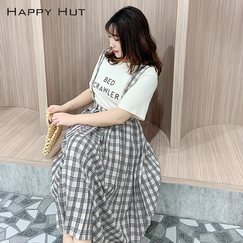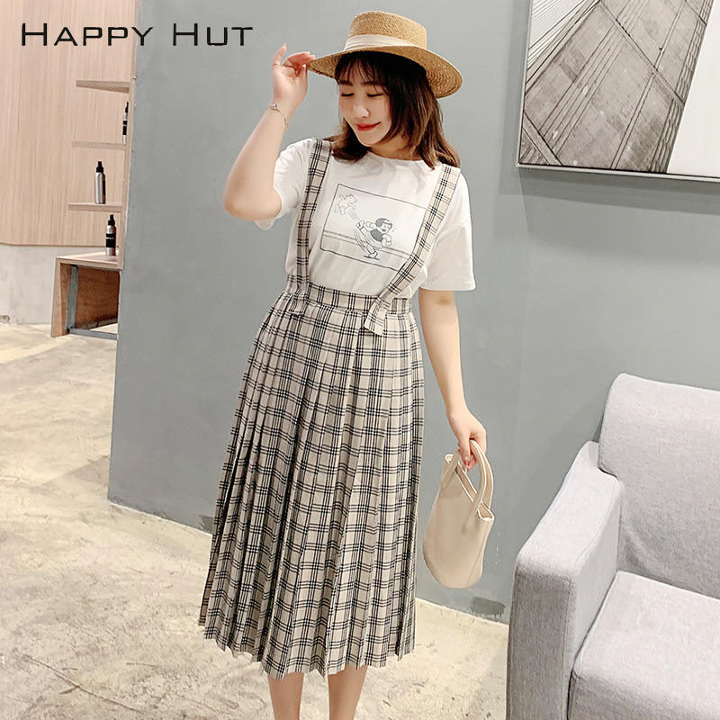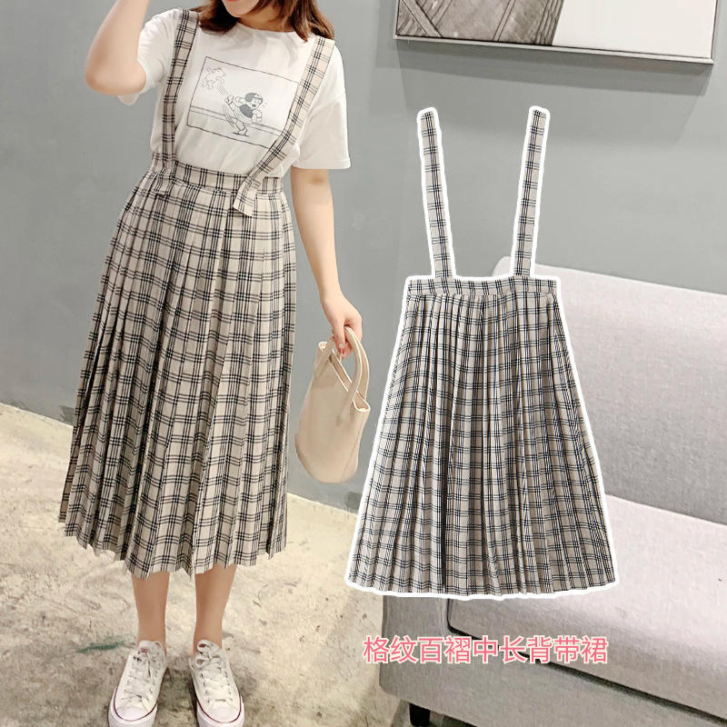 กระโปรงเอี๊ยมลายสก๊อตสำหรับผู้หญิงไซส์ใหญ่ รุ่น N7534 เอวปกติ ผ้าฝ้ายทอ สำหรับฤดูร้อน