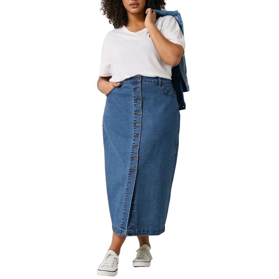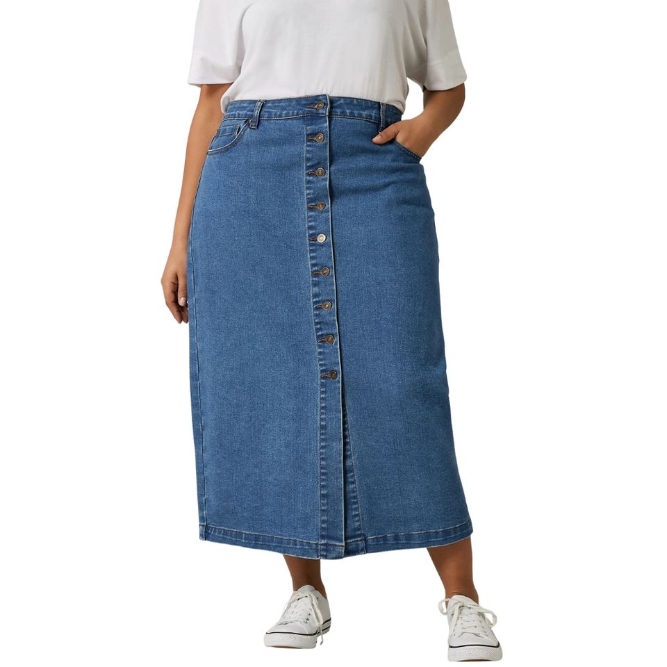 Plus Size Women Vintage A-Line Denim Skirt Natural Waist Button Front Long Casual Fashion Wear Custom Logo