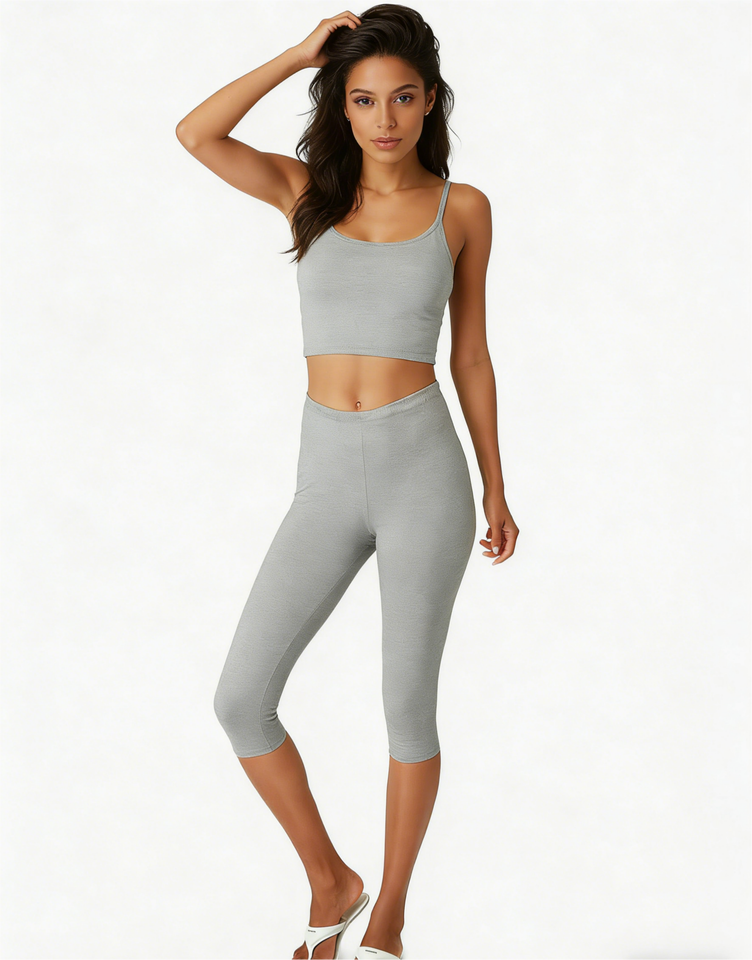 กางเกงเลกกิ้งคาปรีสำหรับผู้หญิงไซส์ใหญ่ แพ็ค 2 ตัว - กางเกงขายาวระดับเข่าเอวกลางสีเขียวมิ้นท์และสีเทาเฮเทอร์