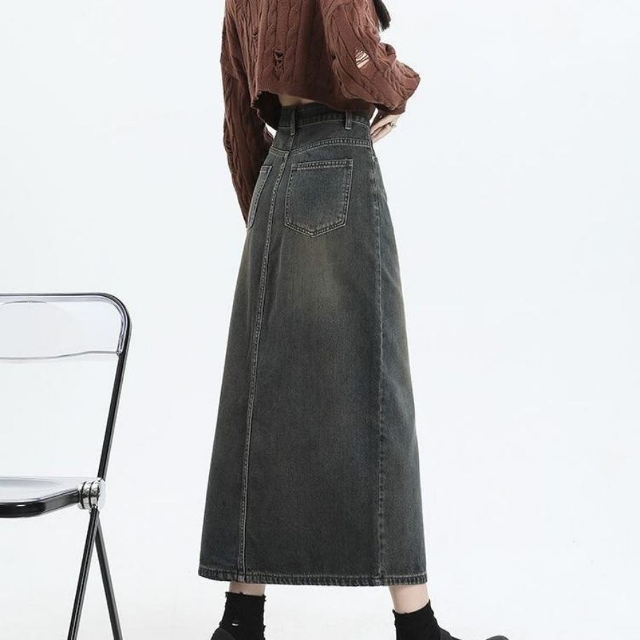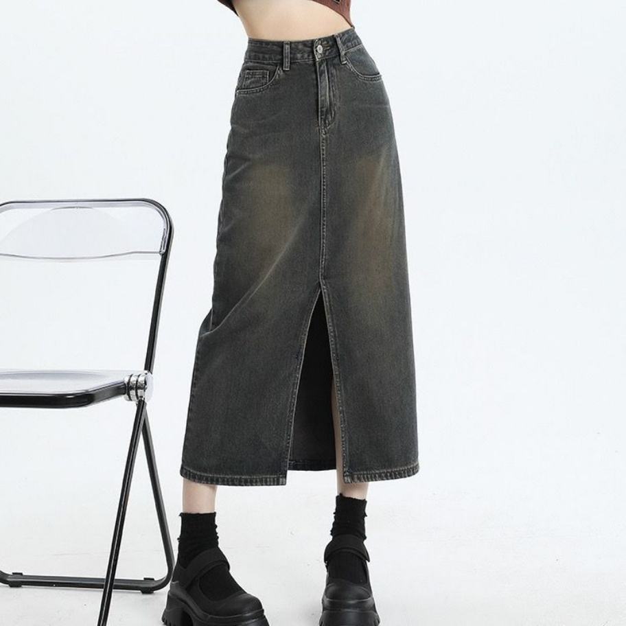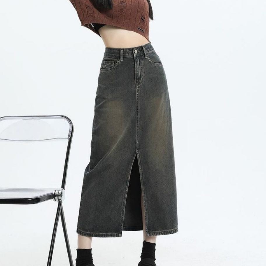 กระโปรงยีนส์ทรงดินสอผ่าข้างประดับพู่สไตล์วินเทจเอวกลางสำหรับผู้หญิงไซส์พลัส ปี 2023 ระบายอากาศได้ดี เหมาะสำหรับฤดูใบไม้ผลิ ฤดูร้อน ฤดูใบไม้ร่วง