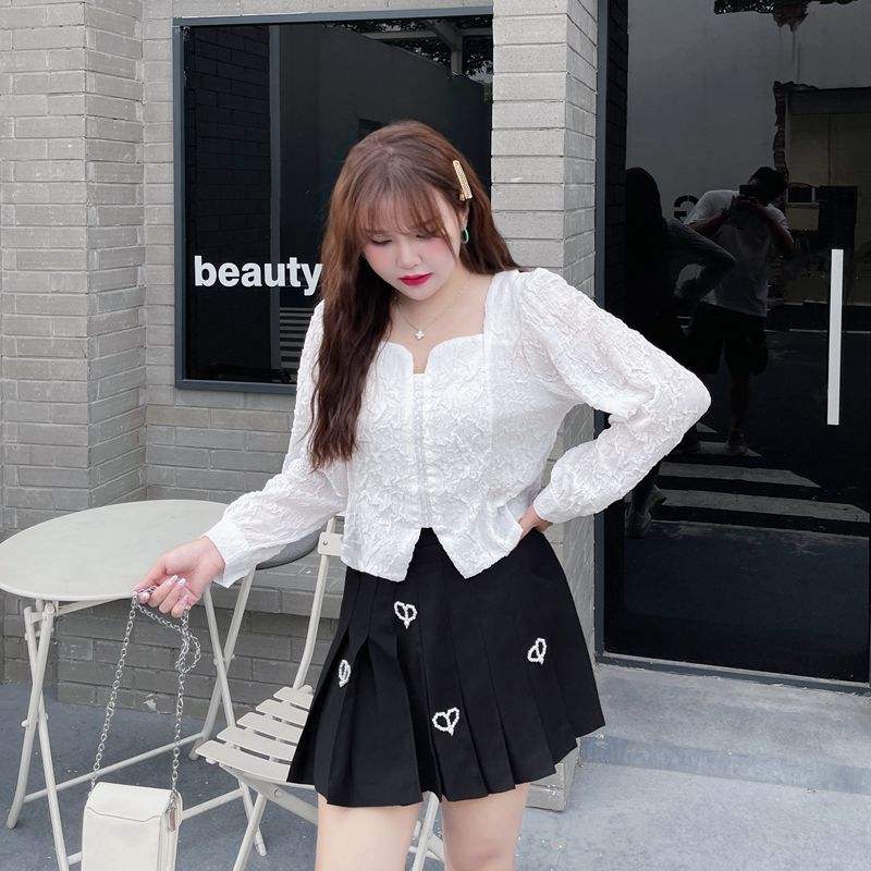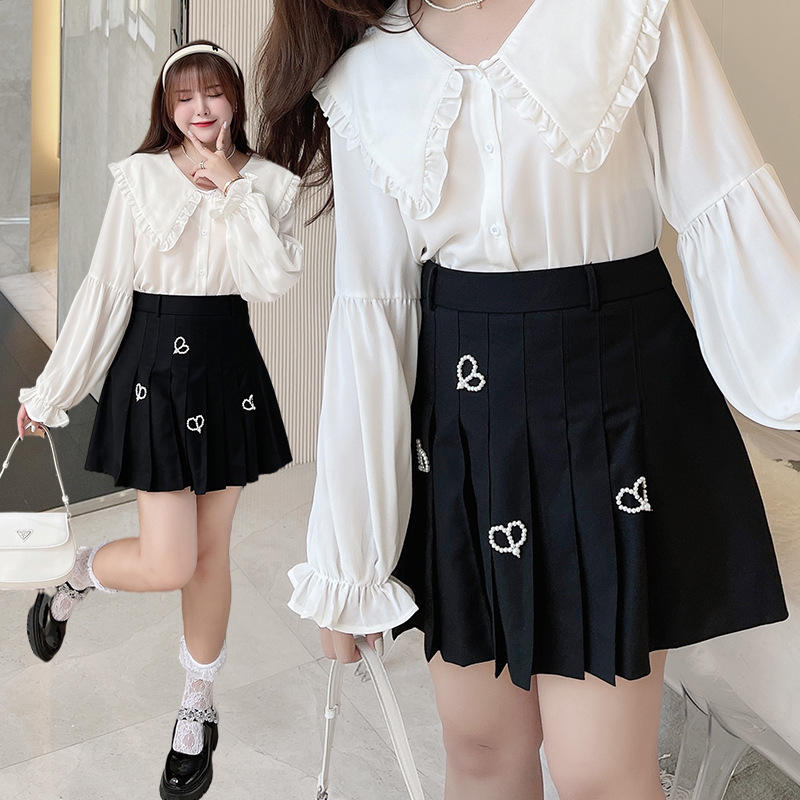 กระโปรงจีบทรงเอเอวสูงสีดำสำหรับผู้หญิงขนาดใหญ่พิเศษพร้อม N8140ประดับด้วยลูกปัดมุก