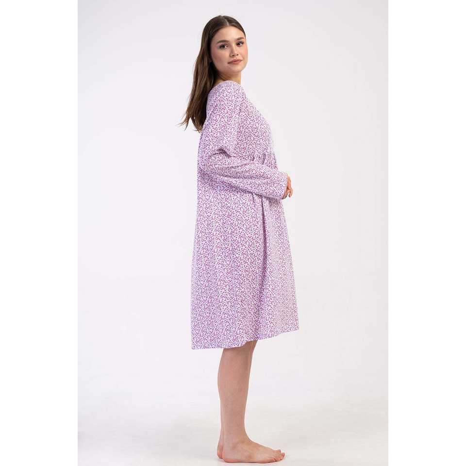 ชุดนอนลายดอกไม้สำหรับผู้หญิงไซส์ใหญ่ แขนยาว ชุดนอนลำลอง สีม่วง