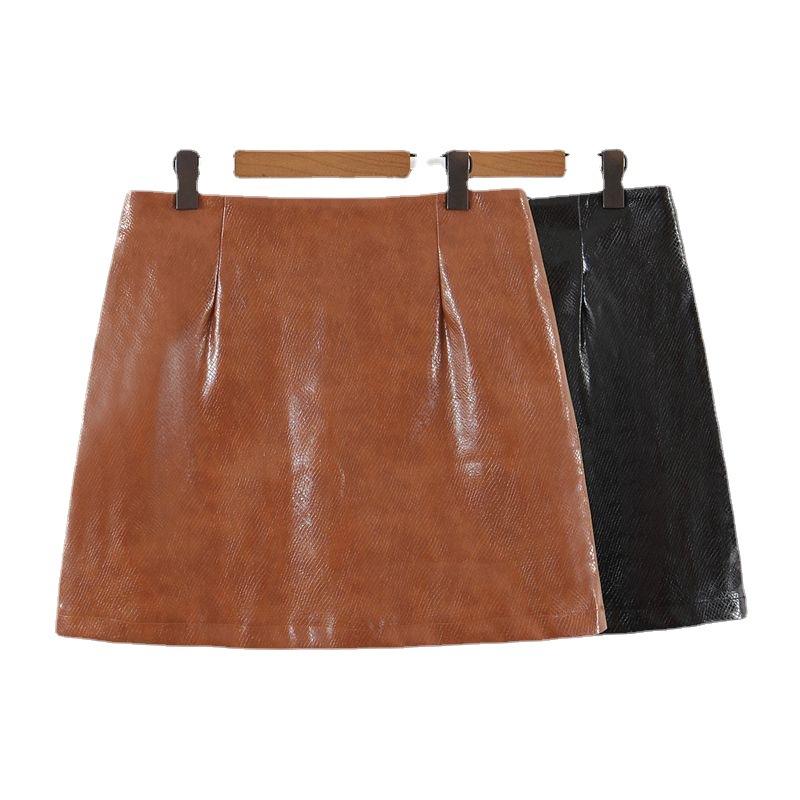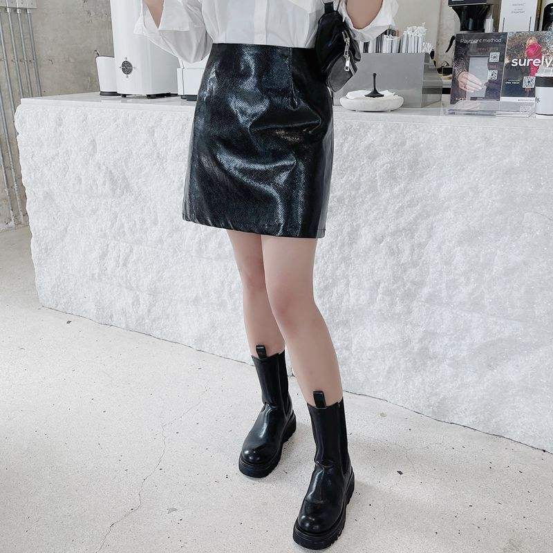 กระโปรงมินิเอวสูงทรงเอสำหรับผู้หญิงไซส์ใหญ่ กระโปรงทรงเข้ารูปสีพื้น รุ่น N8143