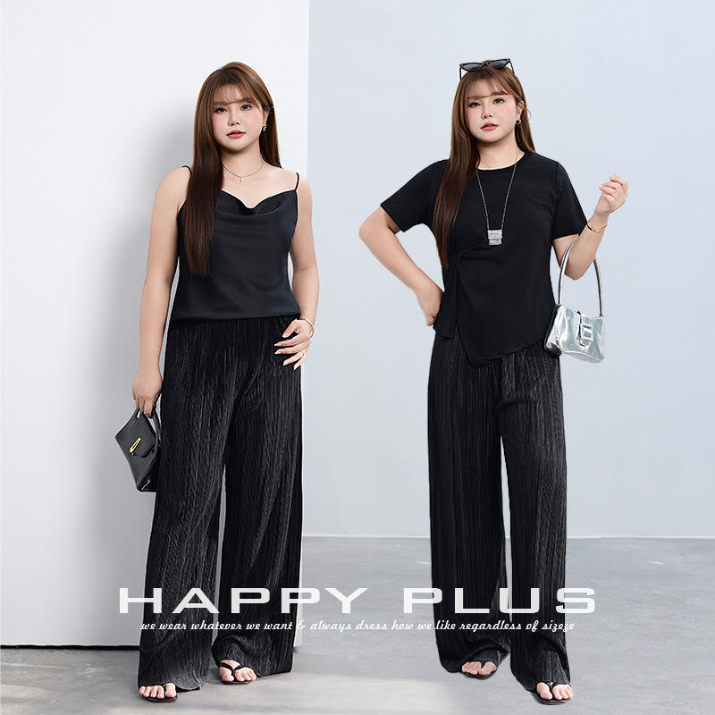 กางเกงขายาวจีบพลีทสำหรับผู้หญิงไซส์ใหญ่ รุ่น N9200 สีดำ สไตล์ลำลอง