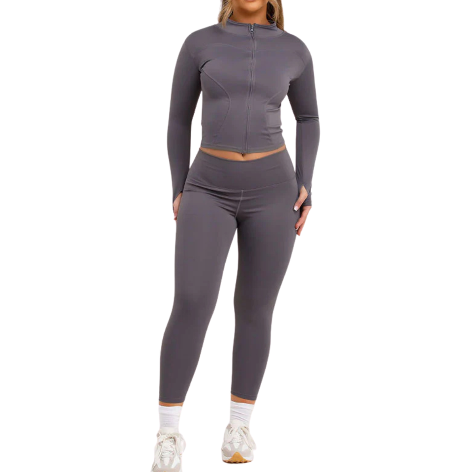 ชุดโยคะไซส์ใหญ่แบบมีซิปด้านหน้า ผ้าสเตรชเอวสูง กระชับรูปร่าง พร้อมซิปปิด ชุดออกกำลังกาย ชุดกีฬา สำหรับผู้หญิง