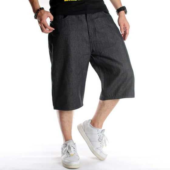 PLUS szie กางเกงขาสั้นผ้ายีนส์52ขาสำหรับผู้ชายกางเกงขาสั้นทรงหลวมสีทึบแฟชั่นลำลองกางเกงผู้ชายไซส์ใหญ่