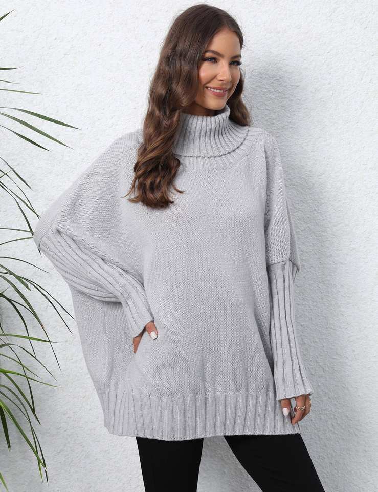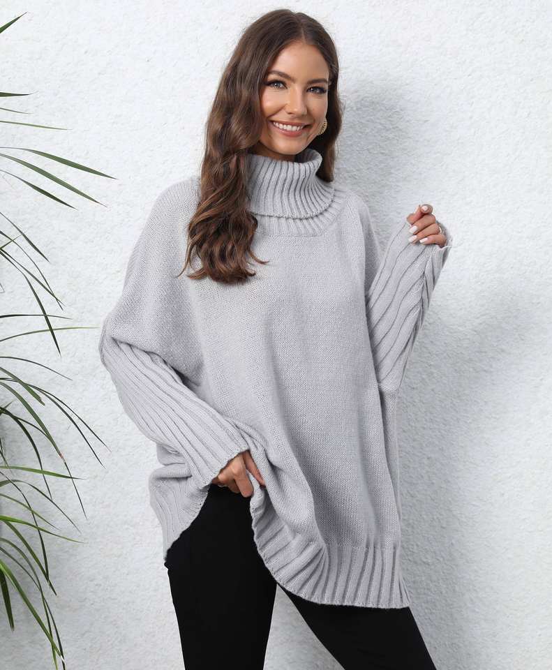 เสื้อสเวตเตอร์ถักคอสูงสำหรับผู้หญิง, เสื้อสเวตเตอร์แบบสวมหัวแขนยาวทรงโอเวอร์ไซส์สำหรับฤดูหนาว