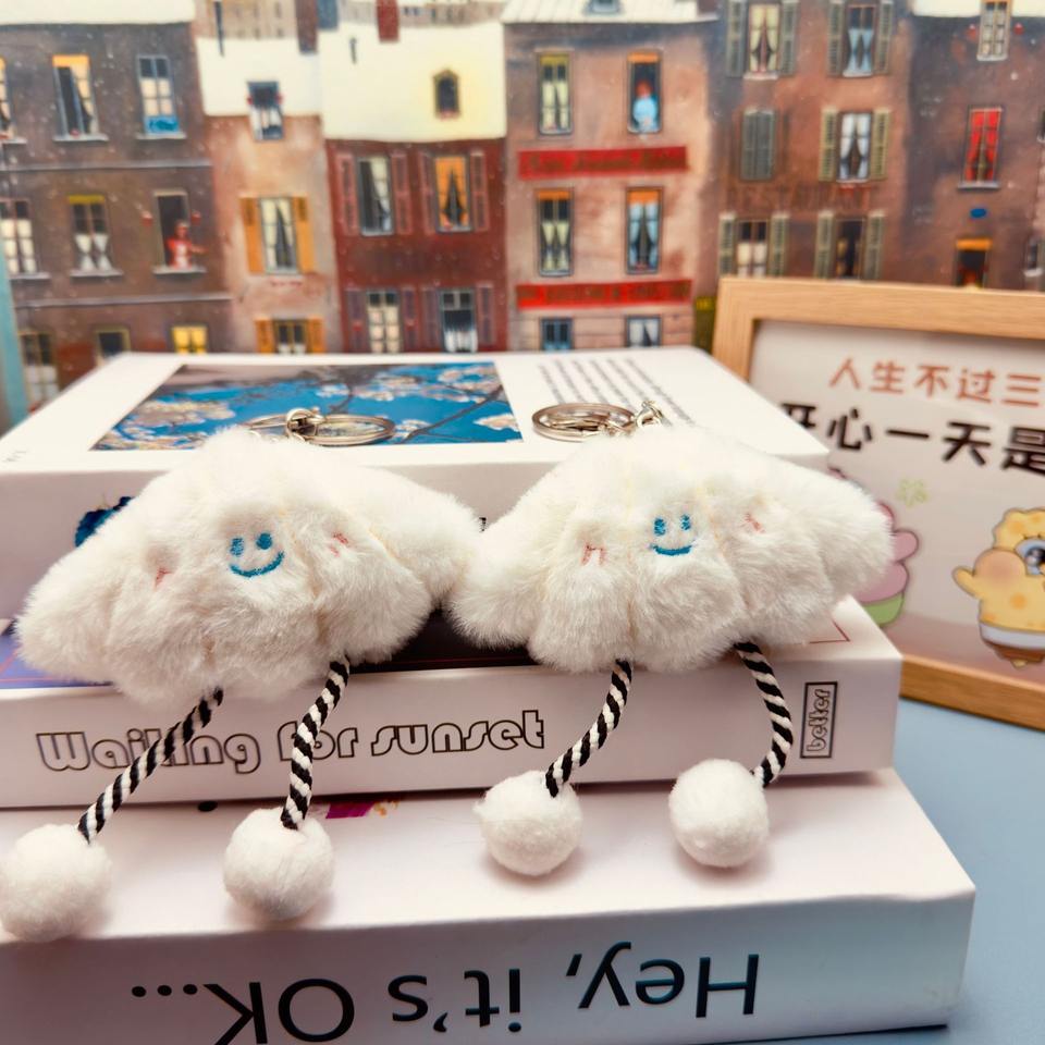 พวงกุญแจก้อนเมฆผ้ากำมะหยี่สำหรับใส่ลูกปัดพวงกุญแจถุงผ้ากระเป๋าเป้สะพายหลังของตกแต่งกระเป๋าพวงกุญแจตุ๊กตาหมีตุ๊กตาของเล่น