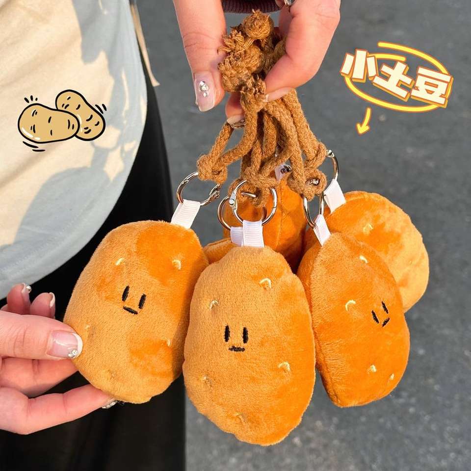 พวงกุญแจมันฝรั่ง plushie ขายส่งตุ๊กตายัดไส้น่ารักมันหวานกระเป๋าเป้สะพายหลังเสน่ห์จี้คู่พวงกุญแจตุ๊กตาของเล่น
