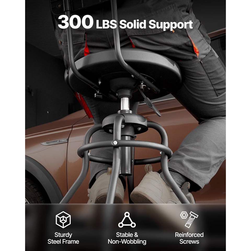 เก้าอี้ทำงานในโรงรถแบบลม รับน้ำหนักได้ 300 ปอนด์ ปรับความสูงได้ พร้อมล้อเลื่อนและพนักพิงหมุนได้ 360 องศา