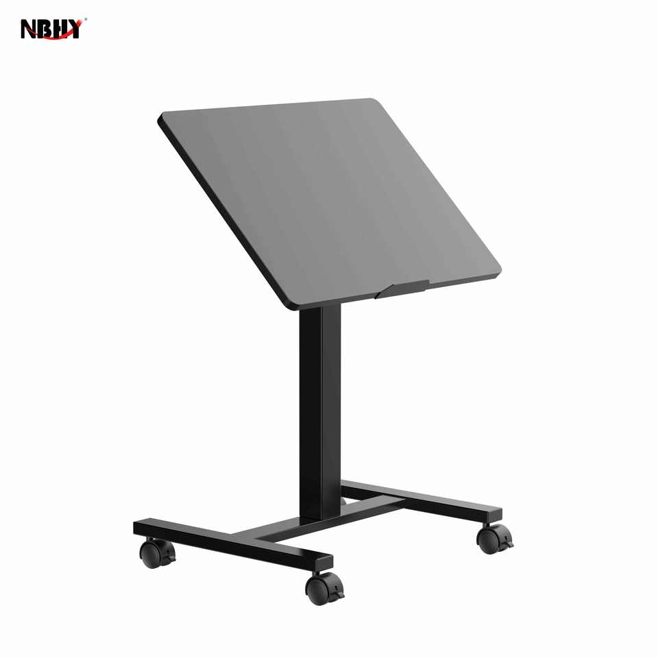 โต๊ะยกแบบหมุนได้พร้อมล้อสำหรับสำนักงานขาเดียวปรับความสูงได้ใช้แก๊สสปริงแบบนิวเมติก