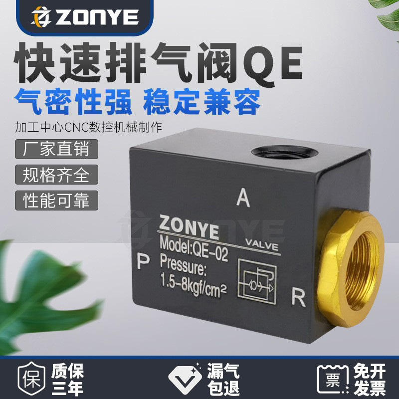 วาล์วระบายอากาศแบบนิวเมติก QE-01/02/03/04 วาล์วระบายอากาศฉุกเฉิน พร้อมวาล์วระบายอากาศแบบเร็วสำหรับกระบอกสูบ 2 จุด 3 จุด 4 จุด