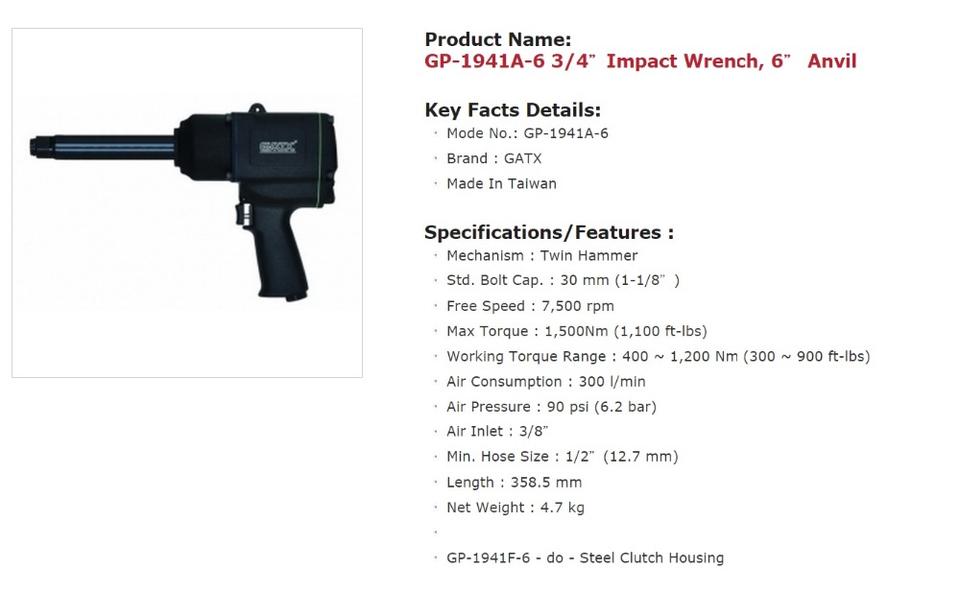ช่วงแรงบิดในการทำงาน:400 ~ 1,200นาโนเมตร (300 ~ 900ฟุต-ปอนด์)