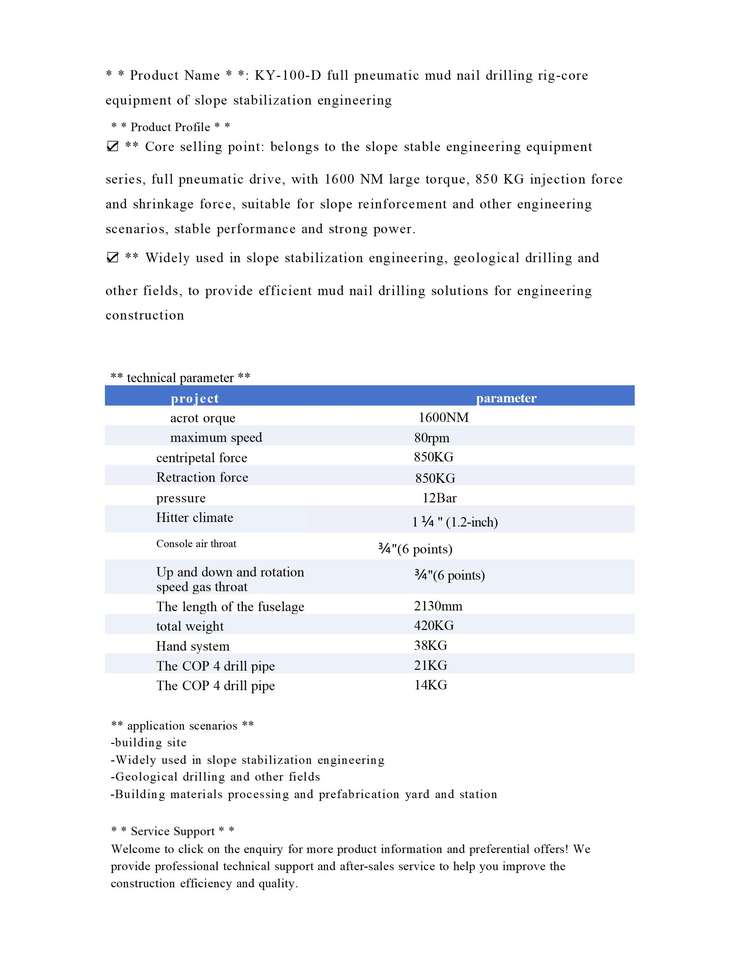 เครื่องเจาะเหมืองแบบใช้ลม ใช้สำหรับเจาะยึดดิน เหมาะสำหรับงานทางหลวง ทางรถไฟ ดินขึ้นดินสูง และพื้นที่ลาดชันบนภูเขา
