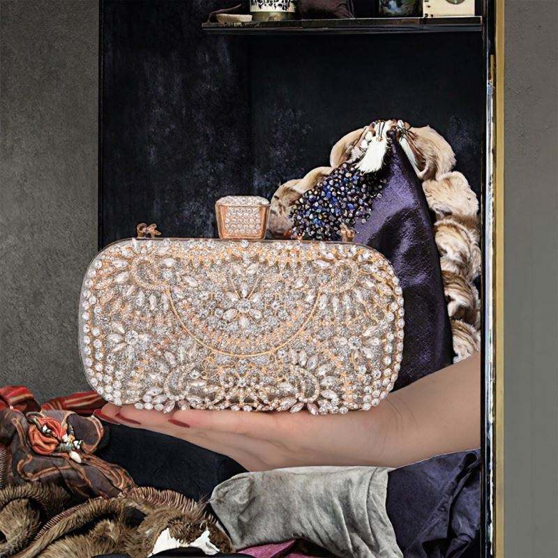 กระเป๋าคลัทช์ทรงครึ่งวงกลมสุดหรูสำหรับผู้หญิง ทำจากอะคริลิก ประดับด้วยมินิคริสตัล สามารถปรับแต่งได้ เหมาะสำหรับงานแต่งงานและงานปาร์ตี้