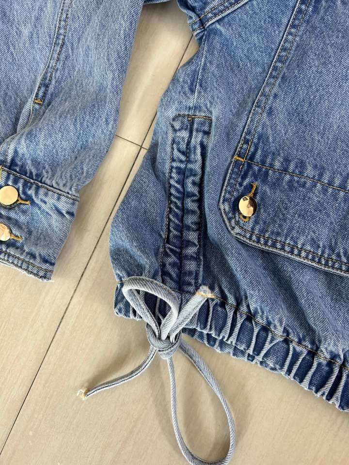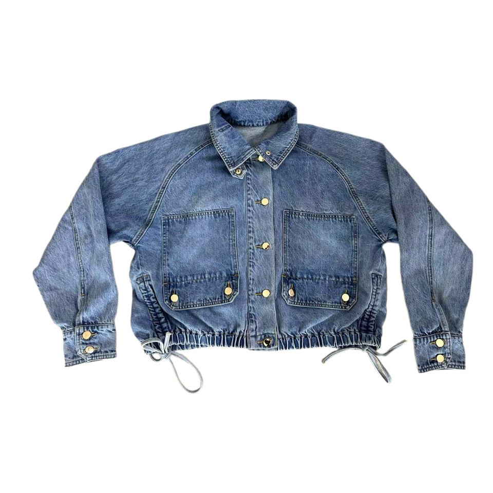 แจ็กเก็ตผ้ายีนส์กลางแจ้งมีกระดุมกระเป๋าสำหรับเด็กผู้หญิงแจ็คเก็ตผ้ายีนส์แบบสั้นยืดหยุ่นใส่ได้ทุกวัน