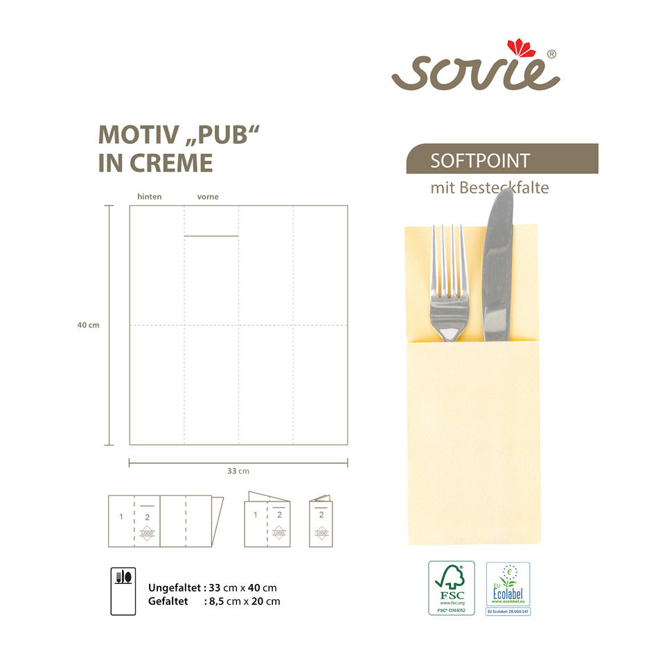 ผ้าเช็ดปากแบบพับได้กระเป๋าครีม Uni 40x33ซม. 1/8พับทำจาก softpoint