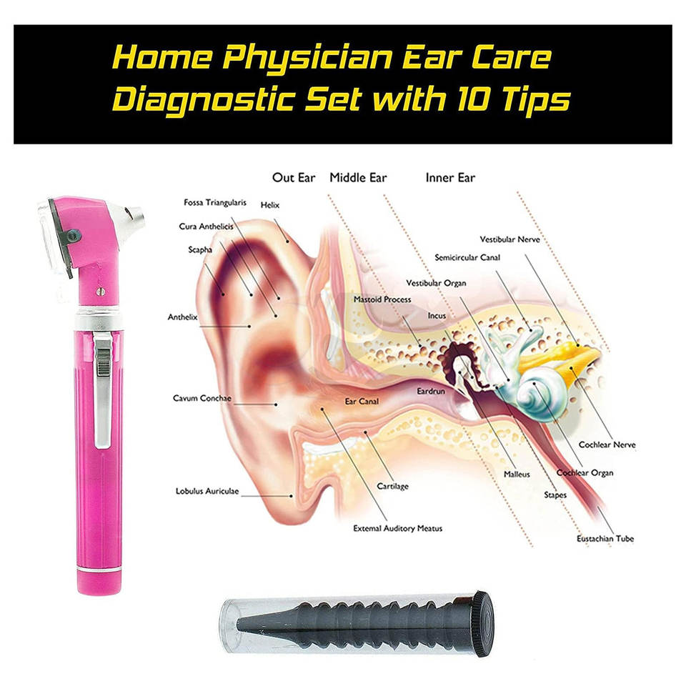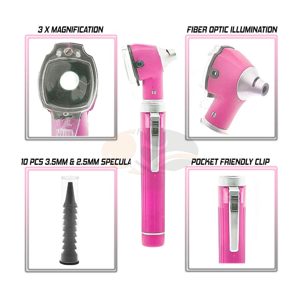 ชุดตรวจหูแบบพกพา สแตนเลสสตีล ไฟเบอร์ออปติก สีชมพู พร้อมไฟ LED สว่าง สำหรับการวินิจฉัยทางการแพทย์
