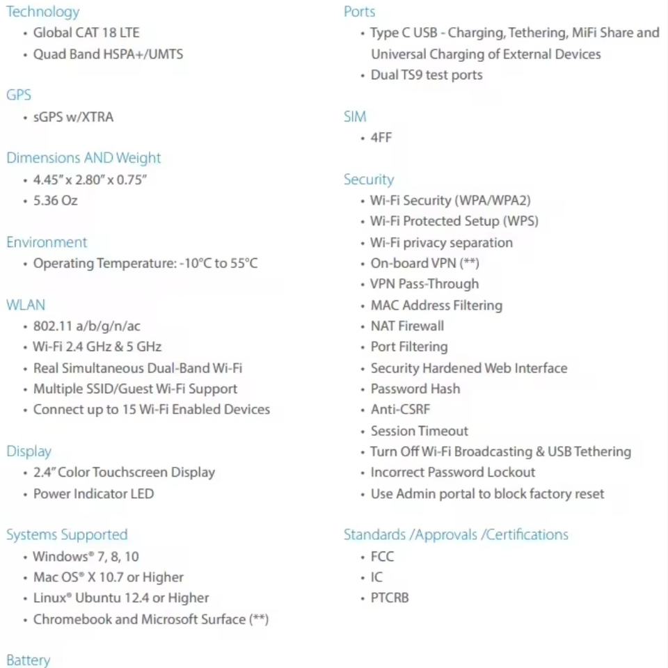 เราเตอร์พกพา Inseego Mifis 8800l 4G พร้อมช่องใส่ซิมการ์ด